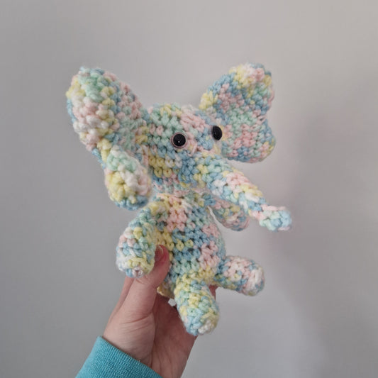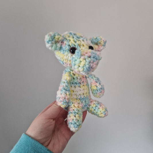 Pastel rainbow multicoloured mini whale acrylic yarn crochet keyring