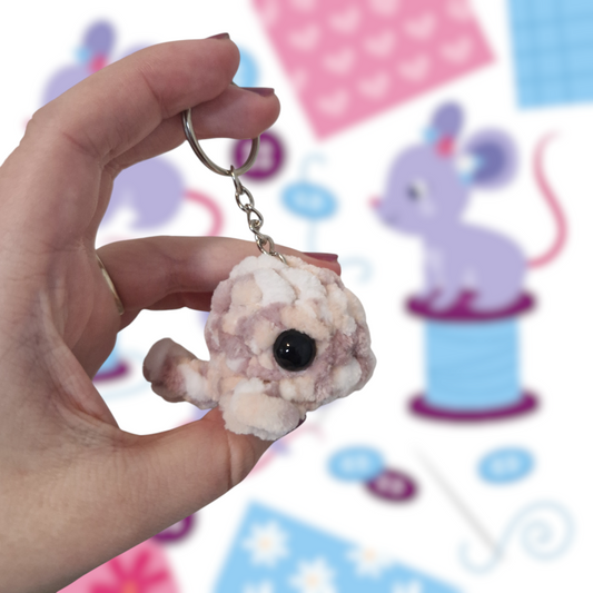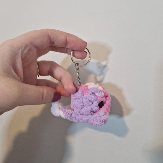 Pink multi coloured mini whale chenille yarn crochet keyring