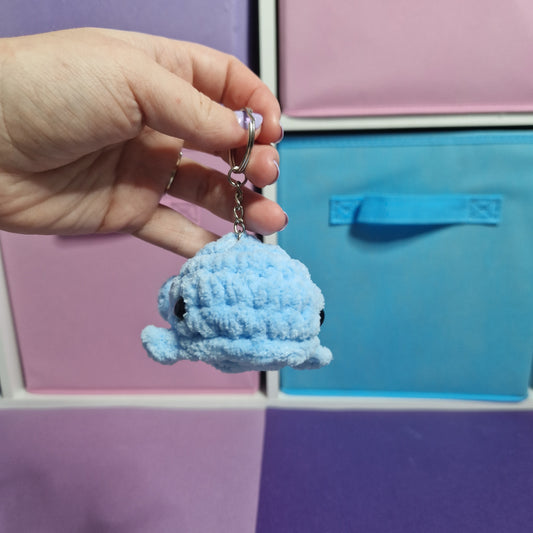 Blue multicoloured mini whale acrylic yarn crochet keyring