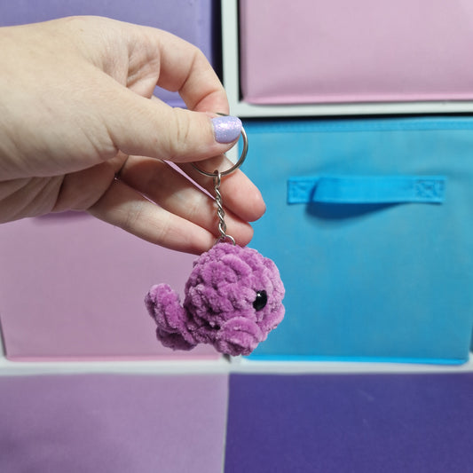 Pink and purple multicoloured mini whale acrylic yarn crochet keyring