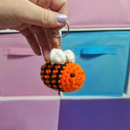 Orange and yellow multicoloured mini whale acrylic yarn crochet keyring