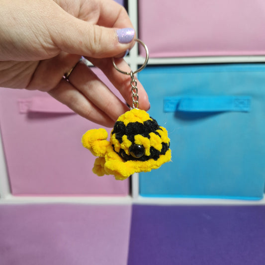 Yellow and orange multicoloured mini whale acrylic yarn crochet keyring