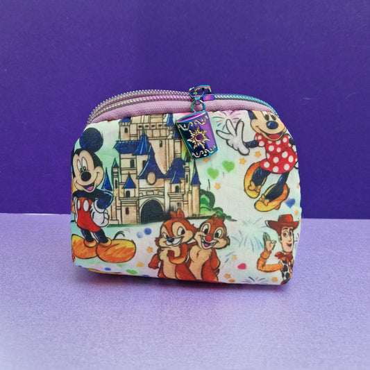 Mixed Princess icon lined mini triangle shaped pouch cosmetic bag with floating lantern zipper pull