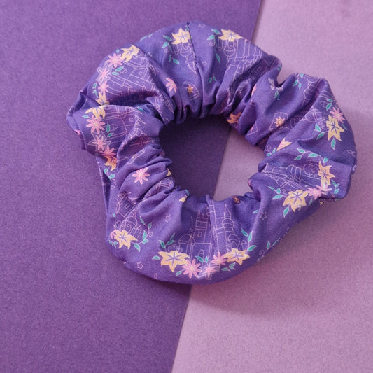 Purple Corona Kingdom Castle themed cotton hair scrunchie