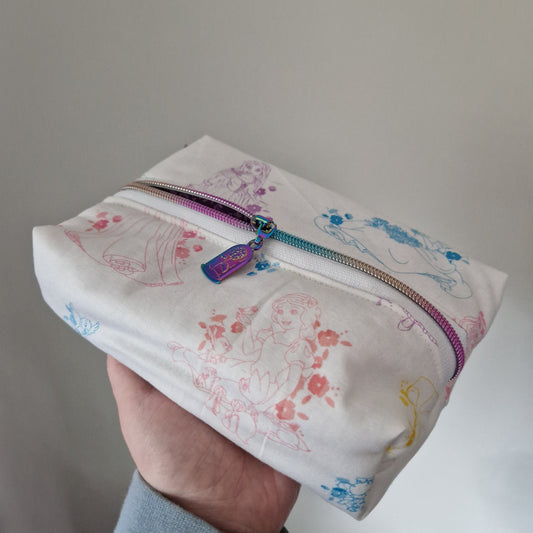 The Lost Princess lined boxy cosmetic bag with matching zipper pull