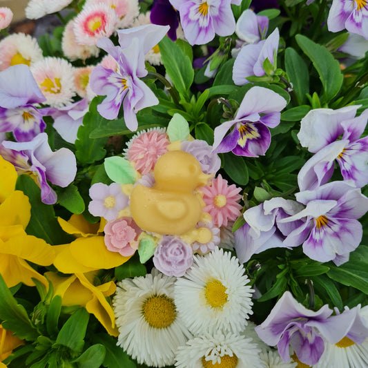 Purple Snuggly Duckling themed cotton hair scrunchie