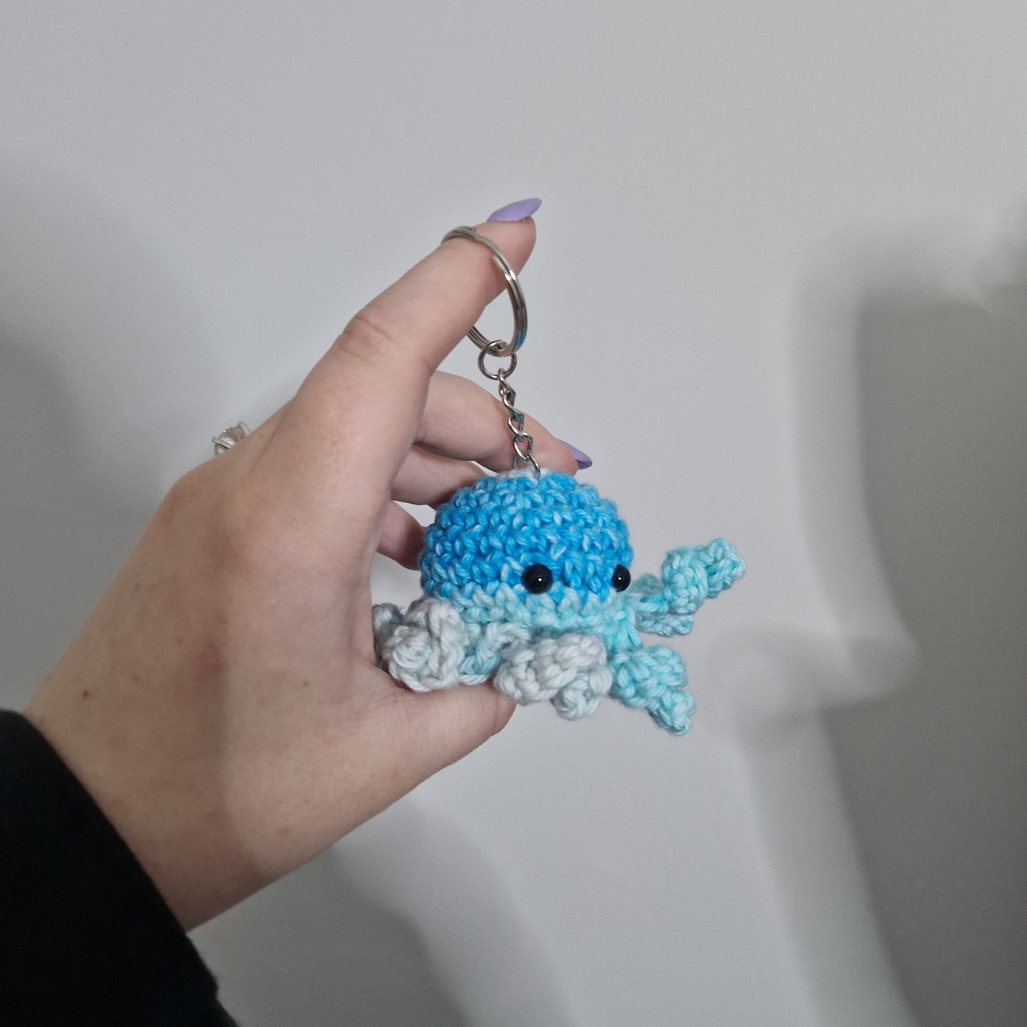 Blue multicoloured octopus acrylic yarn crochet keyring