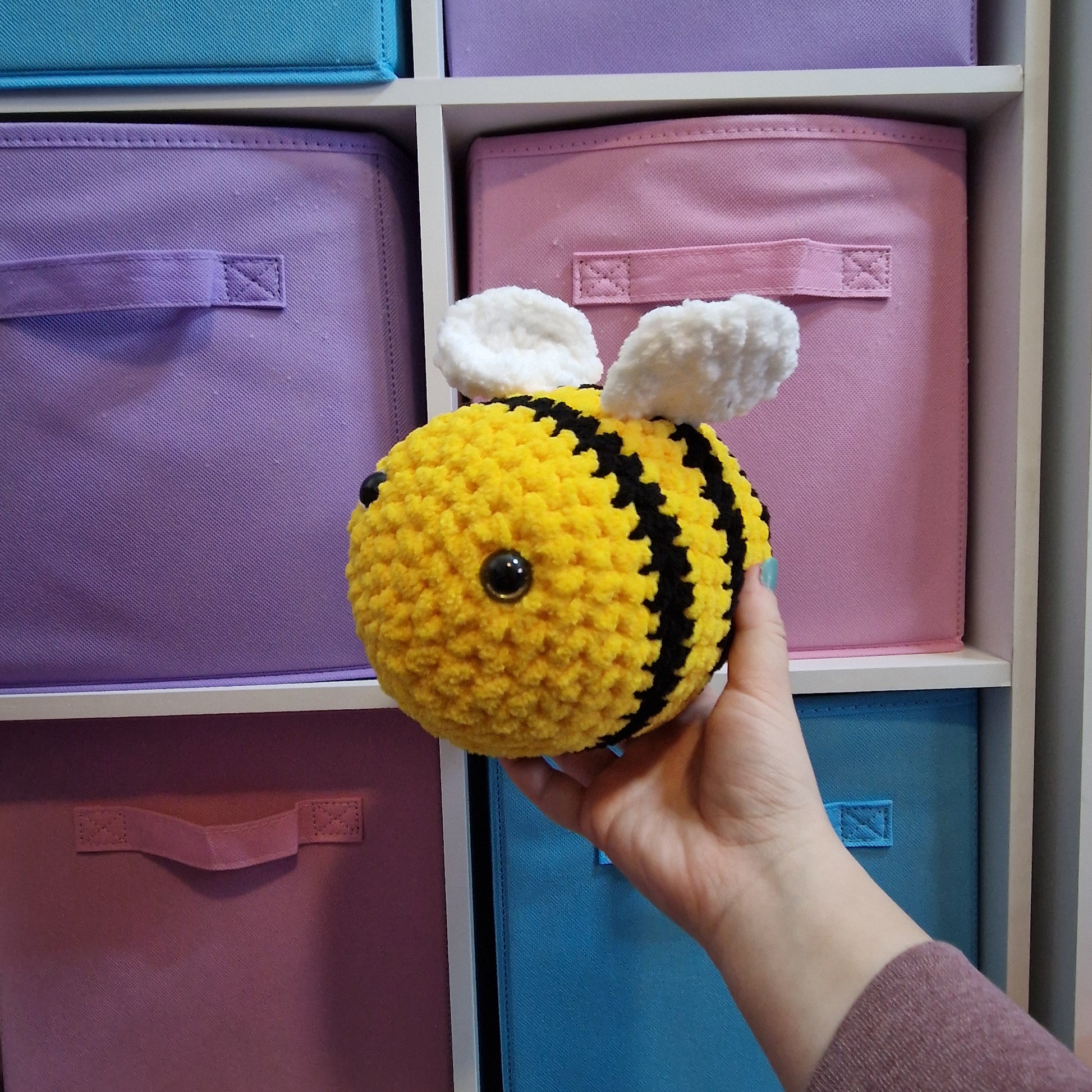 This bee is made with soft plushie yarn to give you an irresistably cuddly bumble bee