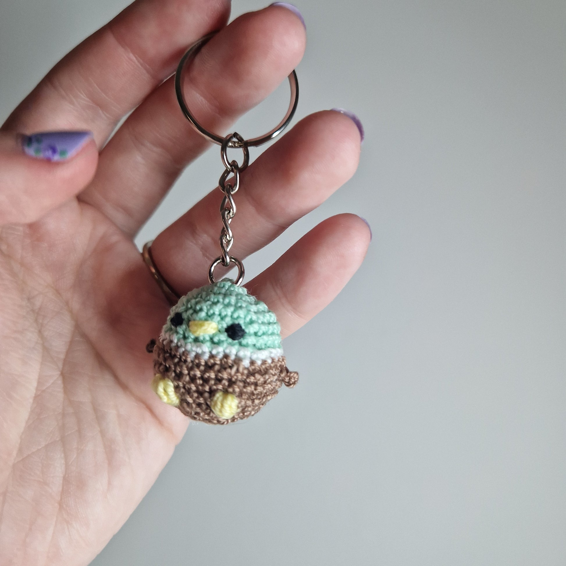 Mint green Mallard Duck lace yarn micro crochet keyring