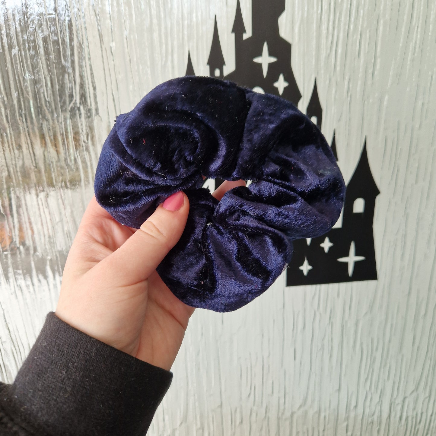 Navy blue velvet hair scrunchie