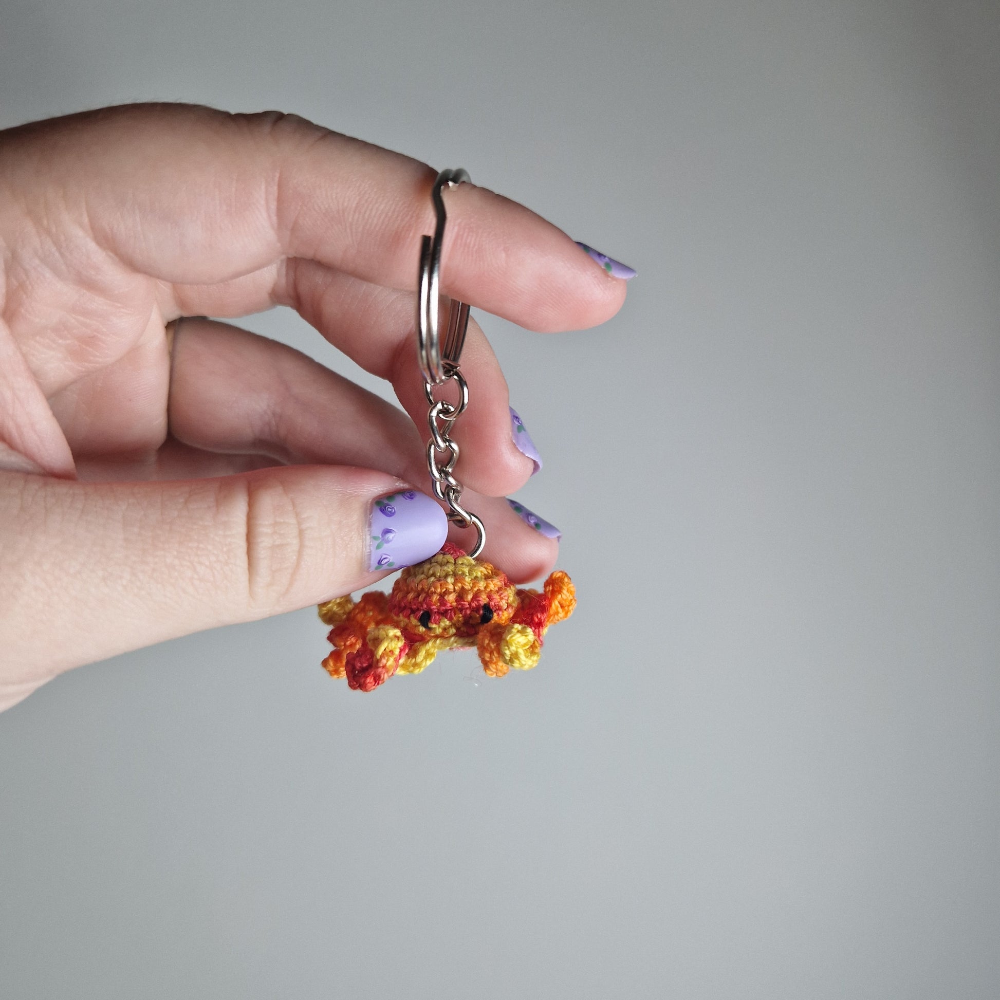 Orange, Red and Yellow lace yarn micro crochet keyring