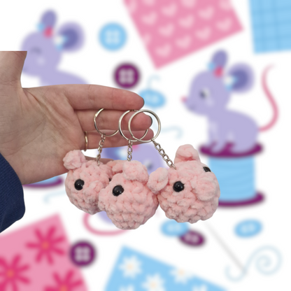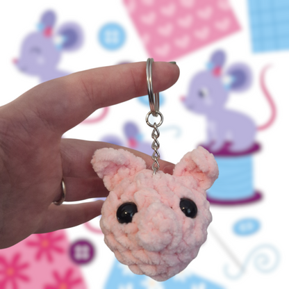 Crochet keyring made with chenille yarn, a metal keychain, stuffing and safety eyes