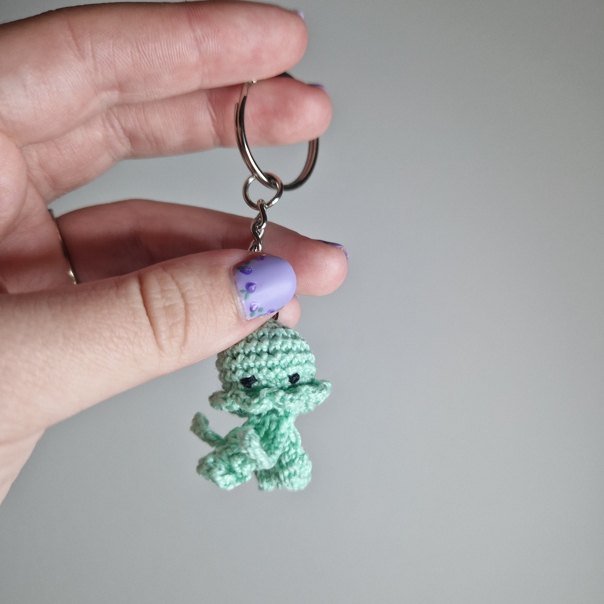 Mint green Jellyfish lace yarn micro crochet keyring