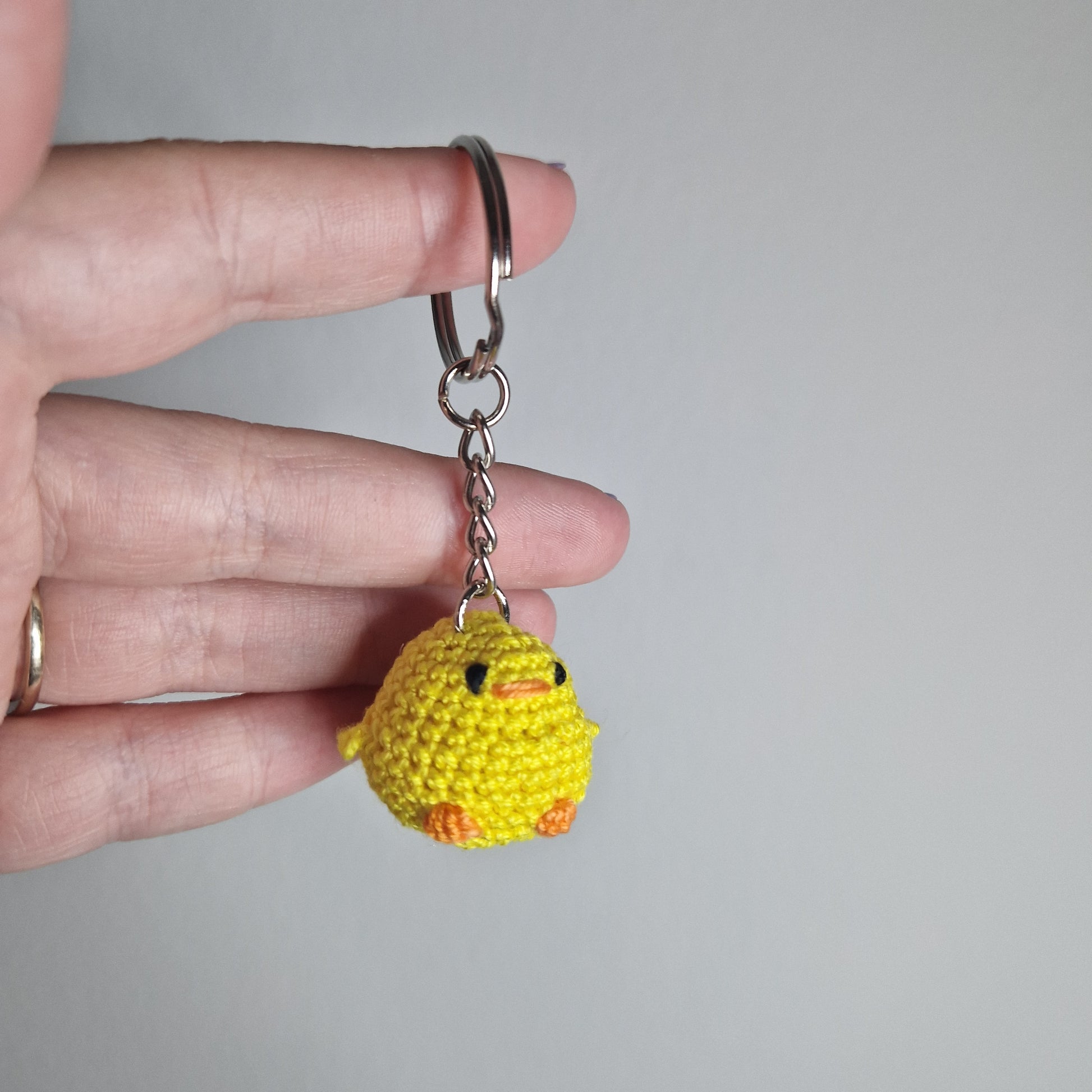 Yellow Chick lace yarn micro crochet keyring