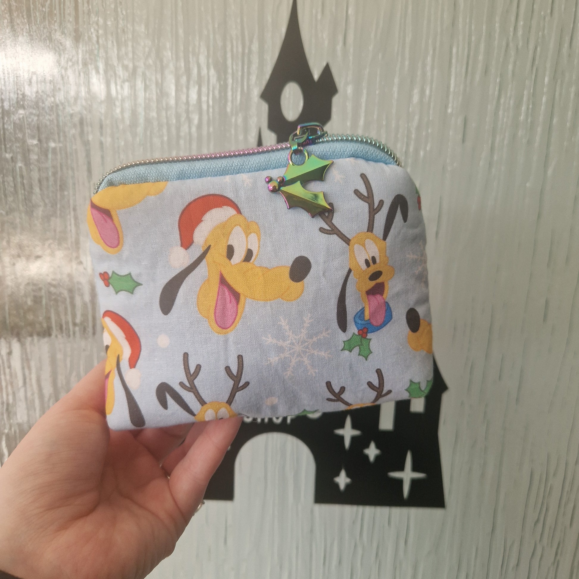 Yellow Dog mini triangle shaped pouch cosmetic bag with rainbow holly zipper pull